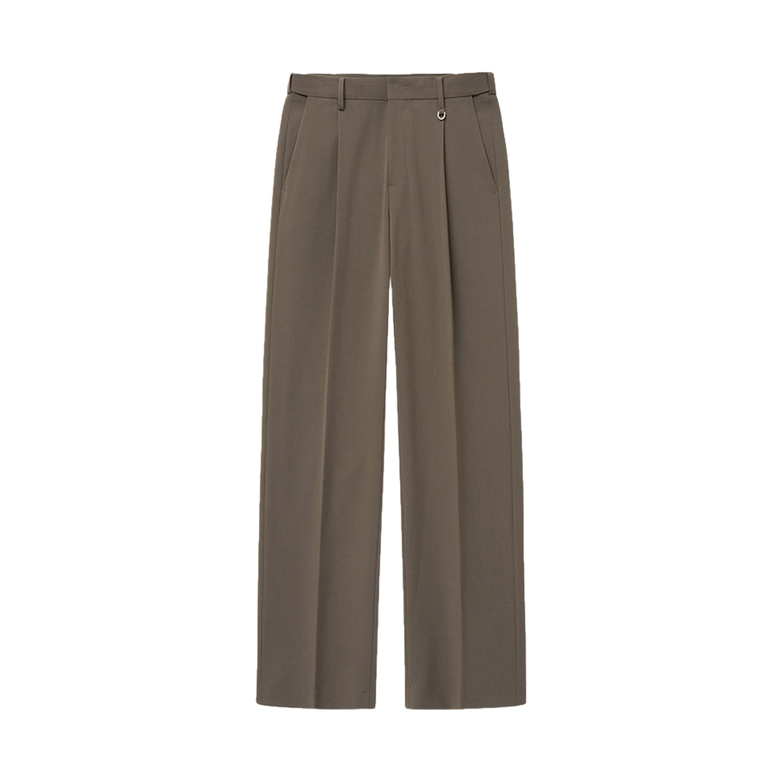 티엔지티 웨이스트 디테일 울 와이드 팬츠 카키