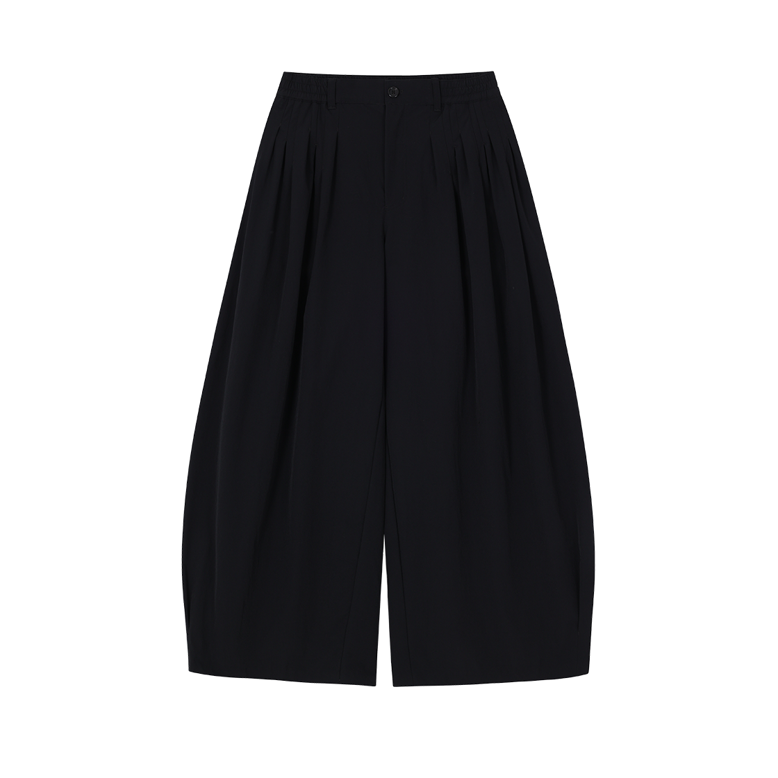 몽플리쎄 여성 로맨틱 와이드핏 플리츠 팬츠 블랙