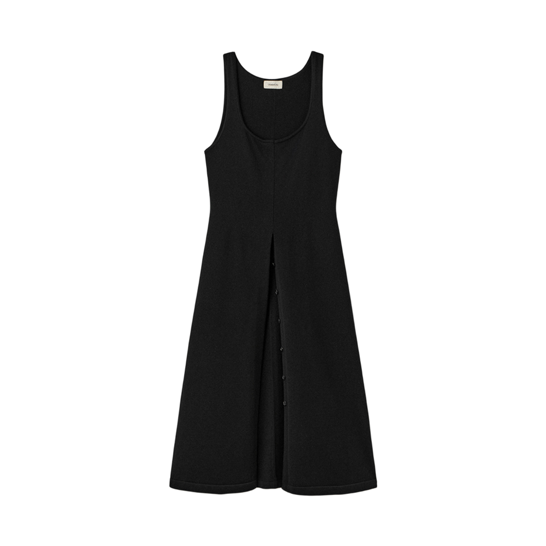 우마뭉 엘라스틱 코튼 버튼 슬릿 드레스 블랙