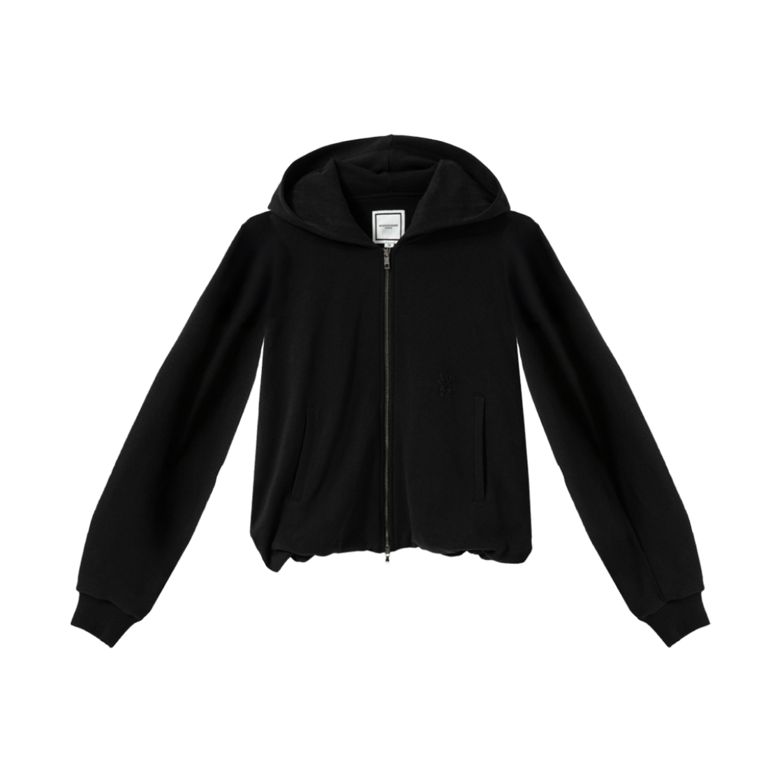 우영미 밴딩 후드 집업 블랙 - 24FW