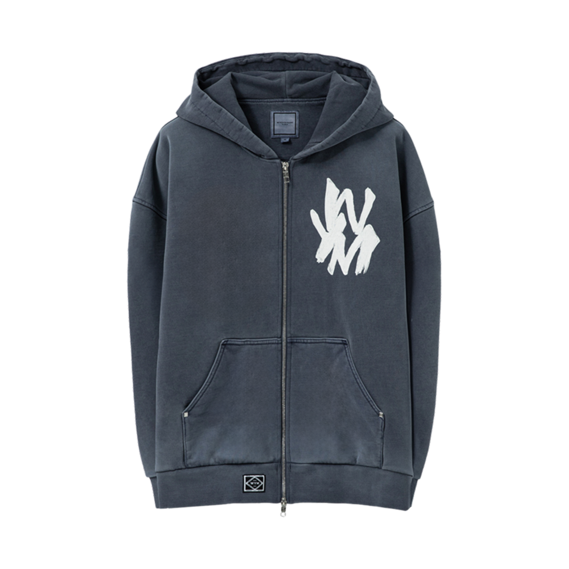 우영미 페인티드 로고 다잉 후드 집업 네이비 - 25SS