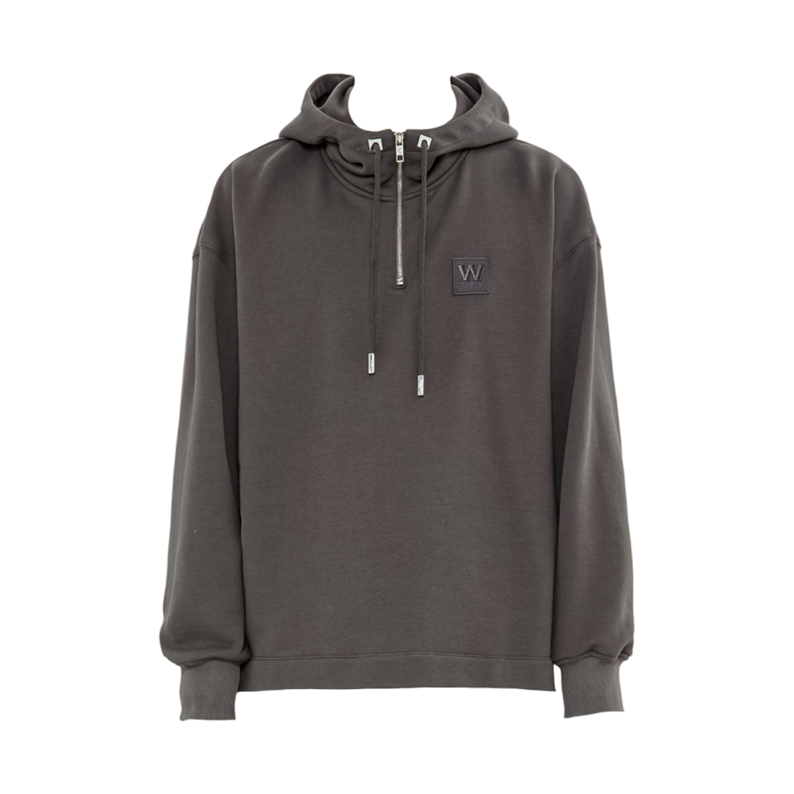 우영미 W 패치 하프 후드 집업 티셔츠 그레이 - 23SS