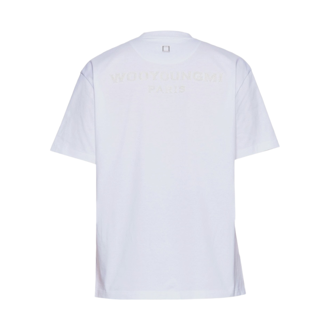 우영미 코튼 비즈 백로고 티셔츠 화이트 - 23FW
