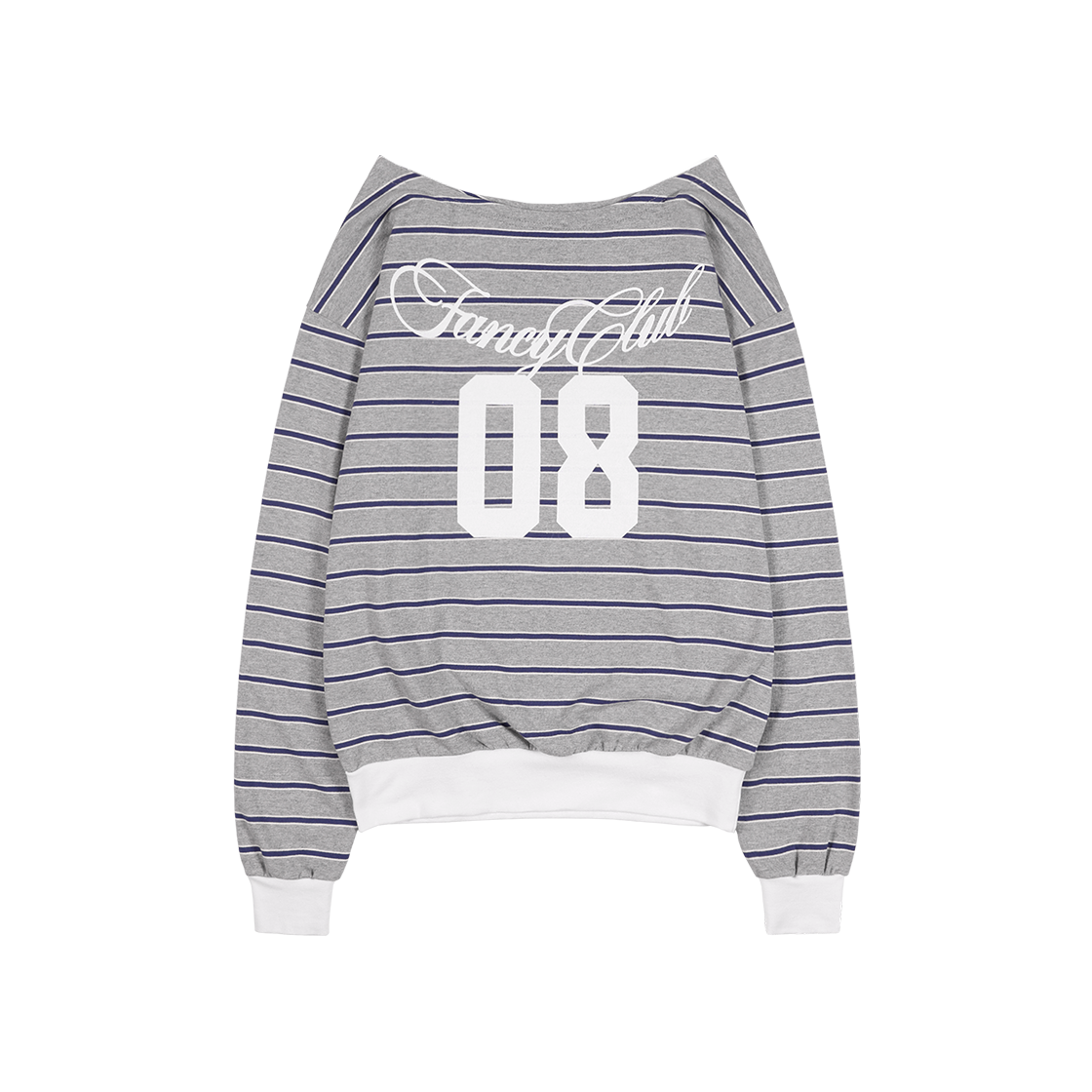 팬시클럽 스트라이프 원숄더 스웻셔츠 그레이