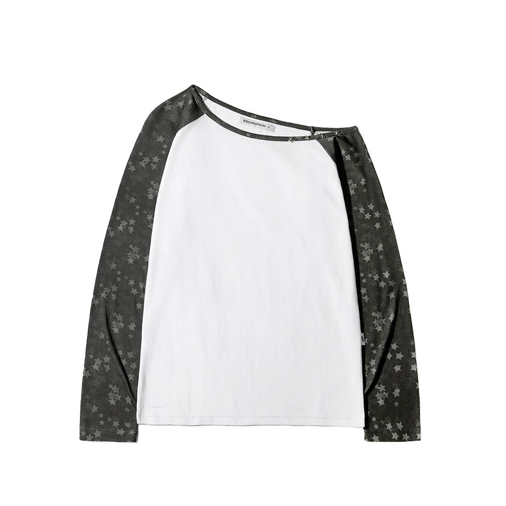 이스케이프프롬 레거시 프린트 별 리벳 포인트 원숄더 롱슬리브 그레이
