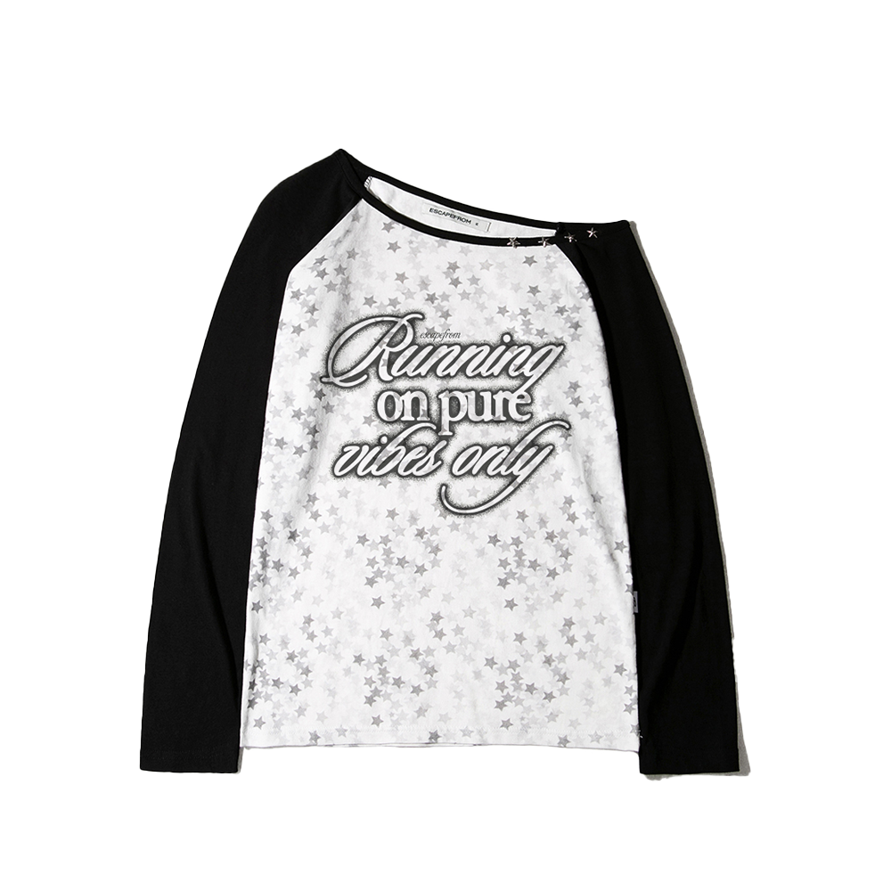 이스케이프프롬 퓨어 바이브 앤드 스프레드 스타 풀프린트 별 리벳 포인트 원숄더 롱슬리브 블랙