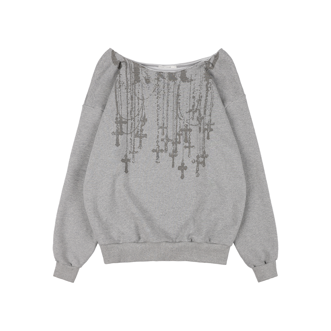 팬시클럽 넥클리스 원숄더 스웻셔츠 멜란지