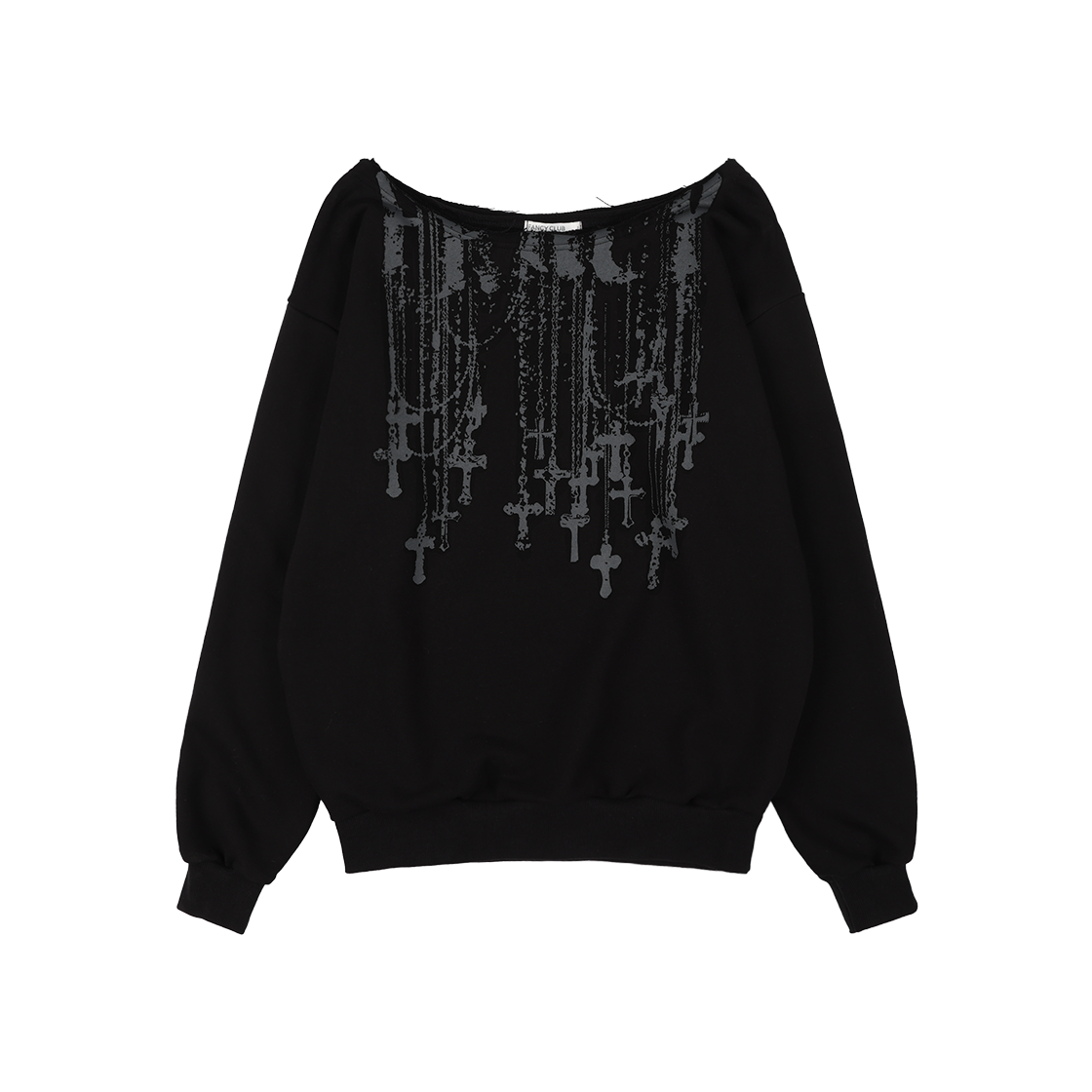 팬시클럽 넥클리스 원숄더 스웻셔츠 블랙
