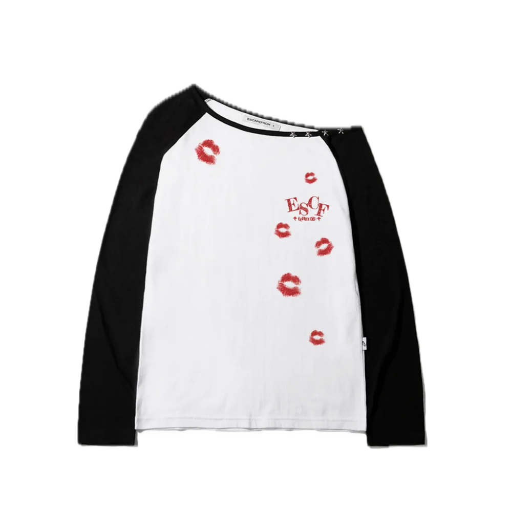 이스케이프프롬 립크러시 프린트 별 리벳 포인트 원숄더 롱슬리브 블랙