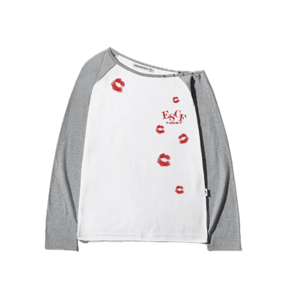이스케이프프롬 립크러시 프린트 별 리벳 포인트 원숄더 롱슬리브 그레이