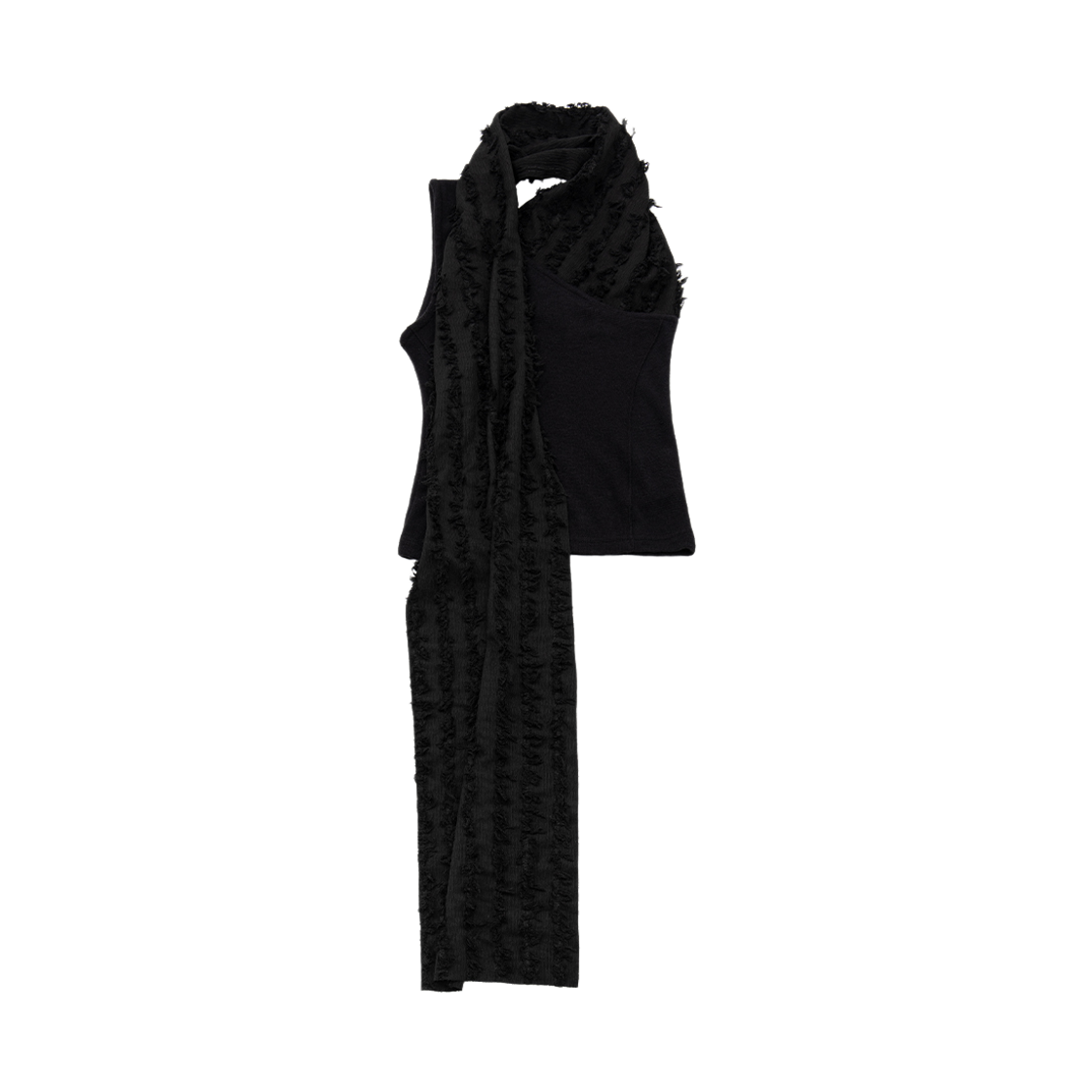 웻태그 원숄더 머플러 탑 블랙