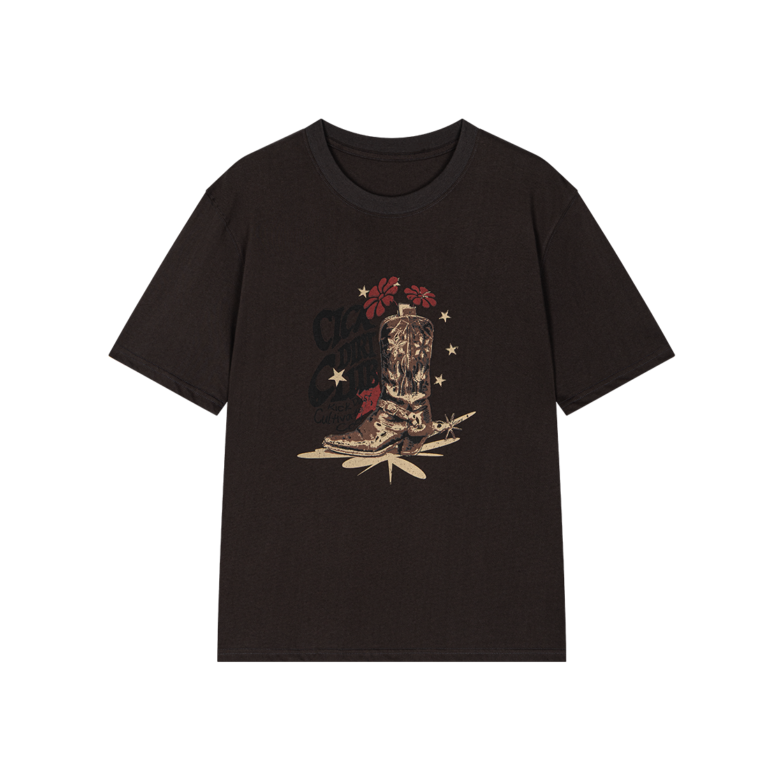 웨이비니스 웨스턴 부츠 그래픽 티셔츠 차콜
