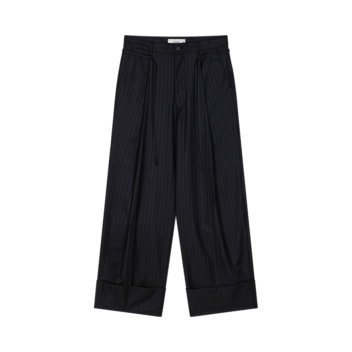 웨이비니스 딥 원 턱 턴업 슬랙스 블랙 스트라이프