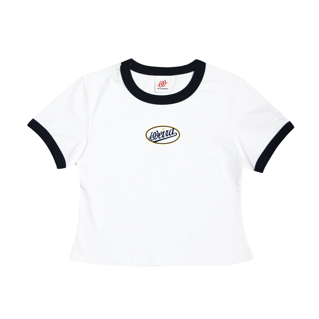 위얼드월드 와펜 크롭 링거 티셔츠 화이트