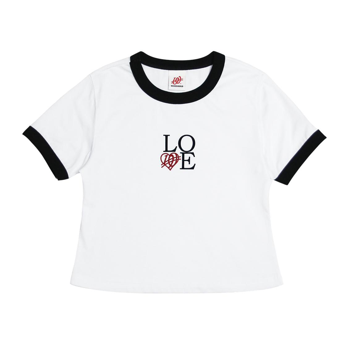 위얼드월드 LOVE 크롭 링거 티셔츠 화이트