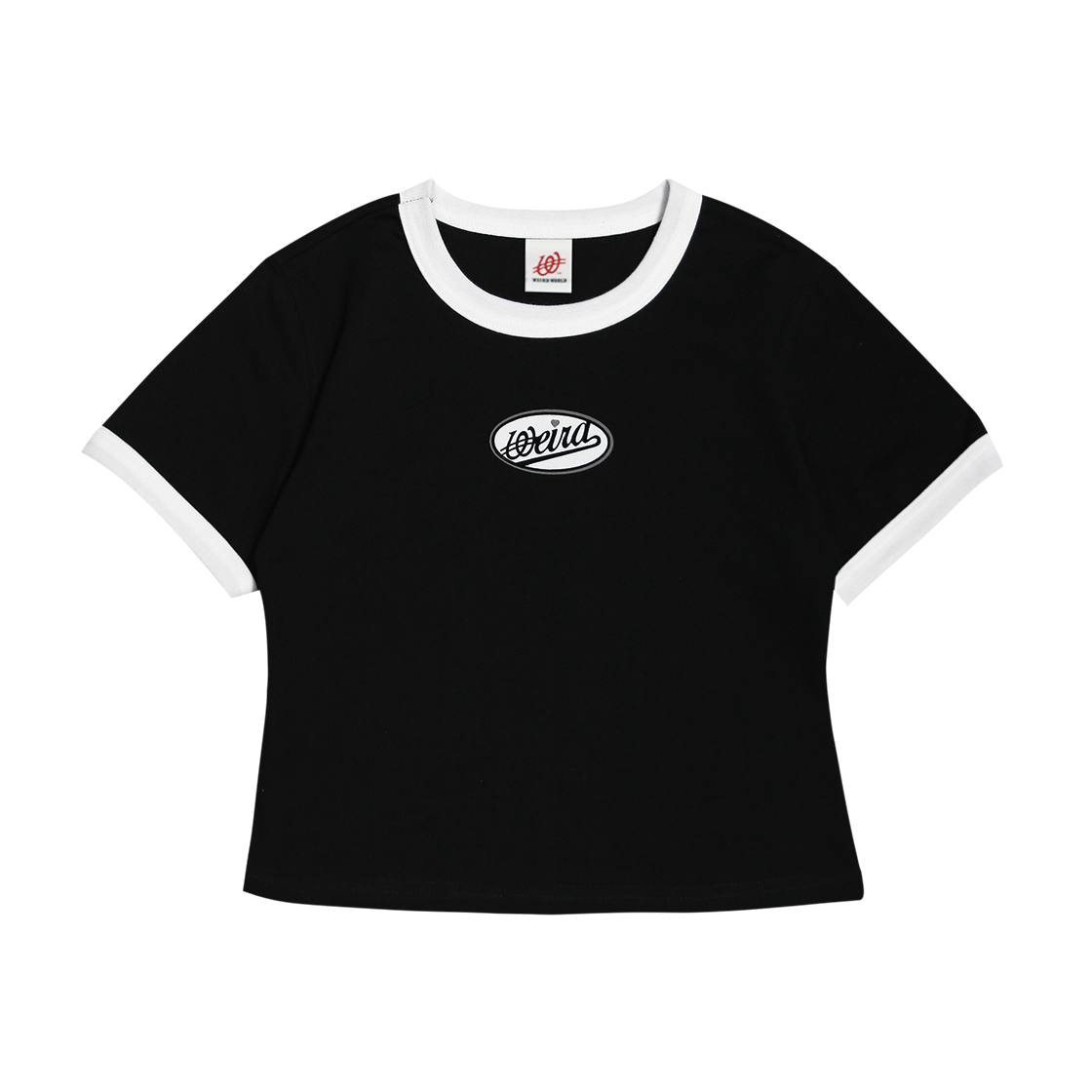 위얼드월드 와펜 크롭 링거 티셔츠 블랙