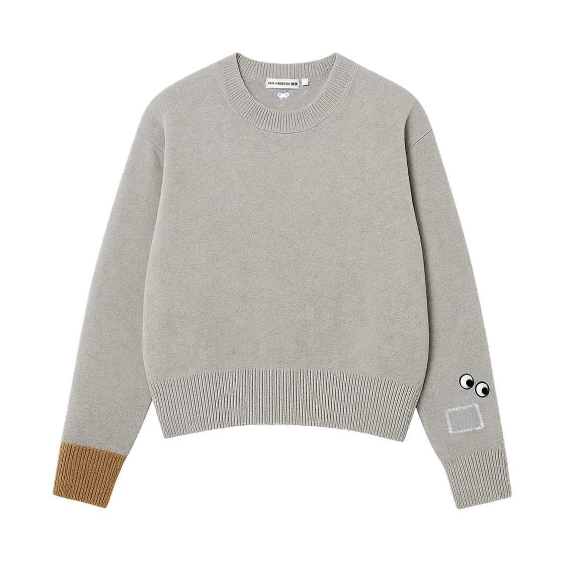 (키즈) 유니클로 x 안야 힌드마치 프리미엄 램스울 롱슬리브 크루넥 스웨터 라이트 그레이 - KR