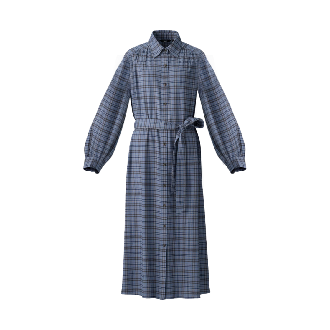 (W) 유니클로 C 벨티드 셔츠 원피스 체크 B 블루 - JP