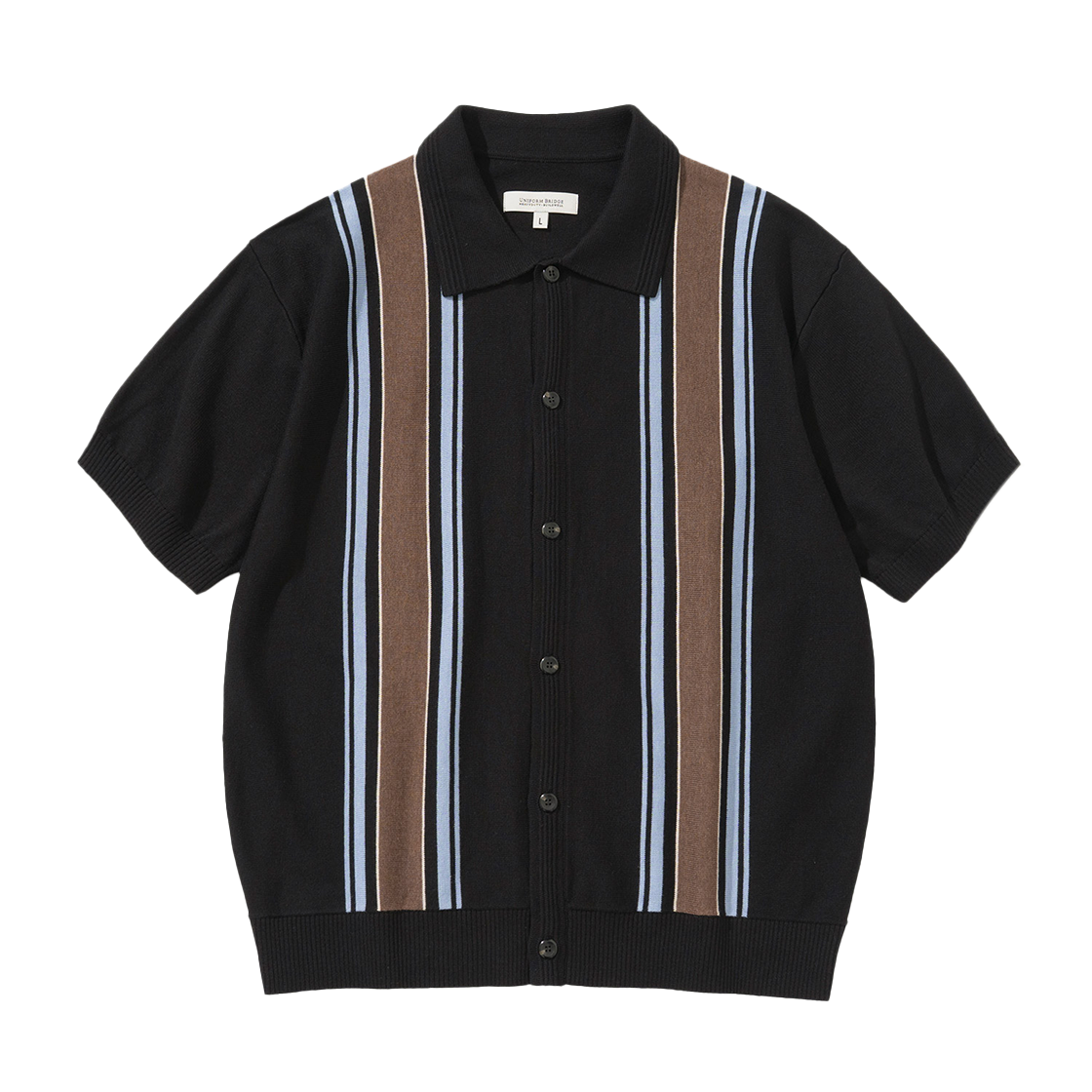 유니폼브릿지 카라 숏슬리브 니트 가디건 블랙