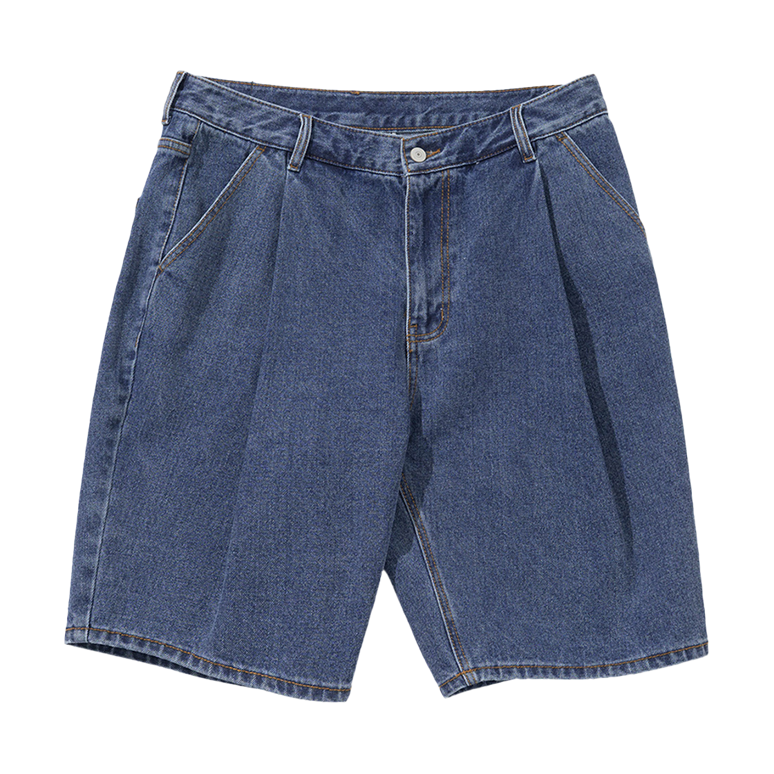 유니폼 브릿지 원턱 데님 숏츠 인디고 워시드