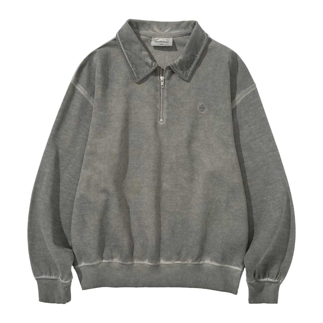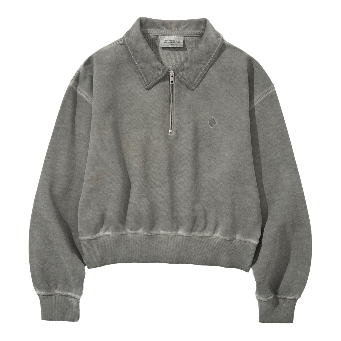 유니폼 브릿지 하프 집업 포켓 스웨트셔츠 블루 워시드