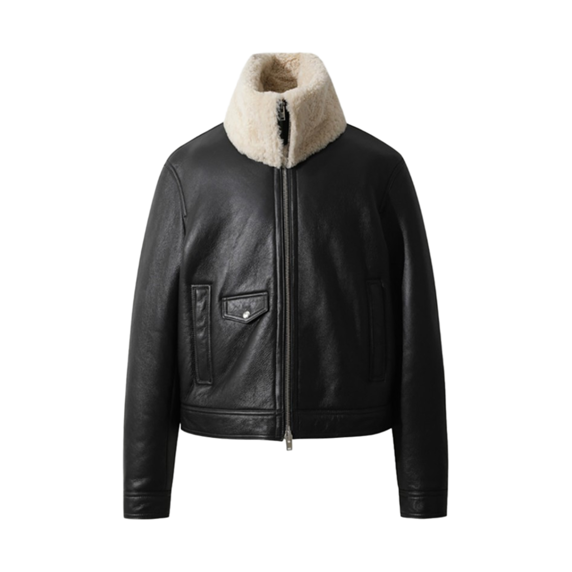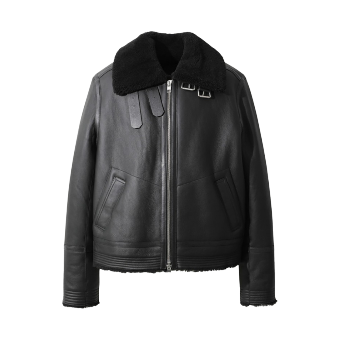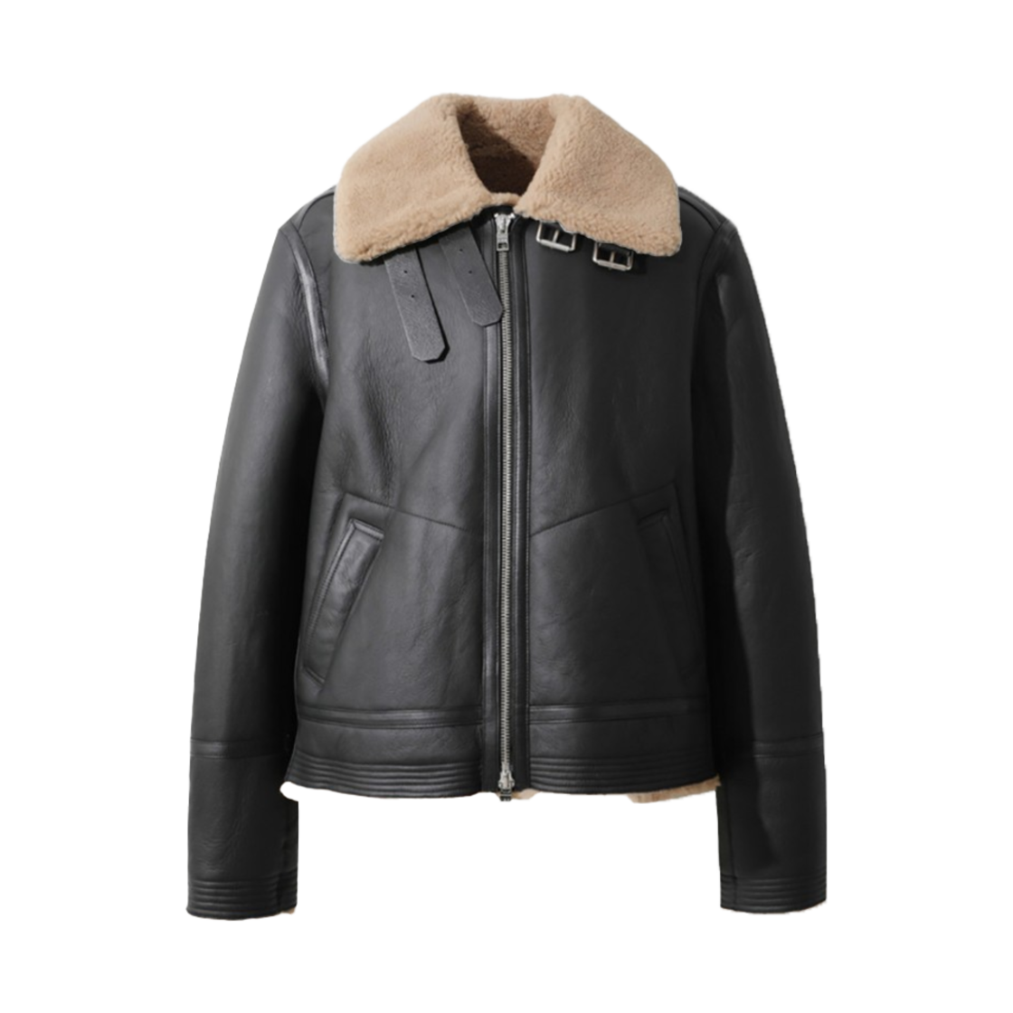 이로 오칸스페 램스킨 레더 숏 블루종 점퍼 블랙