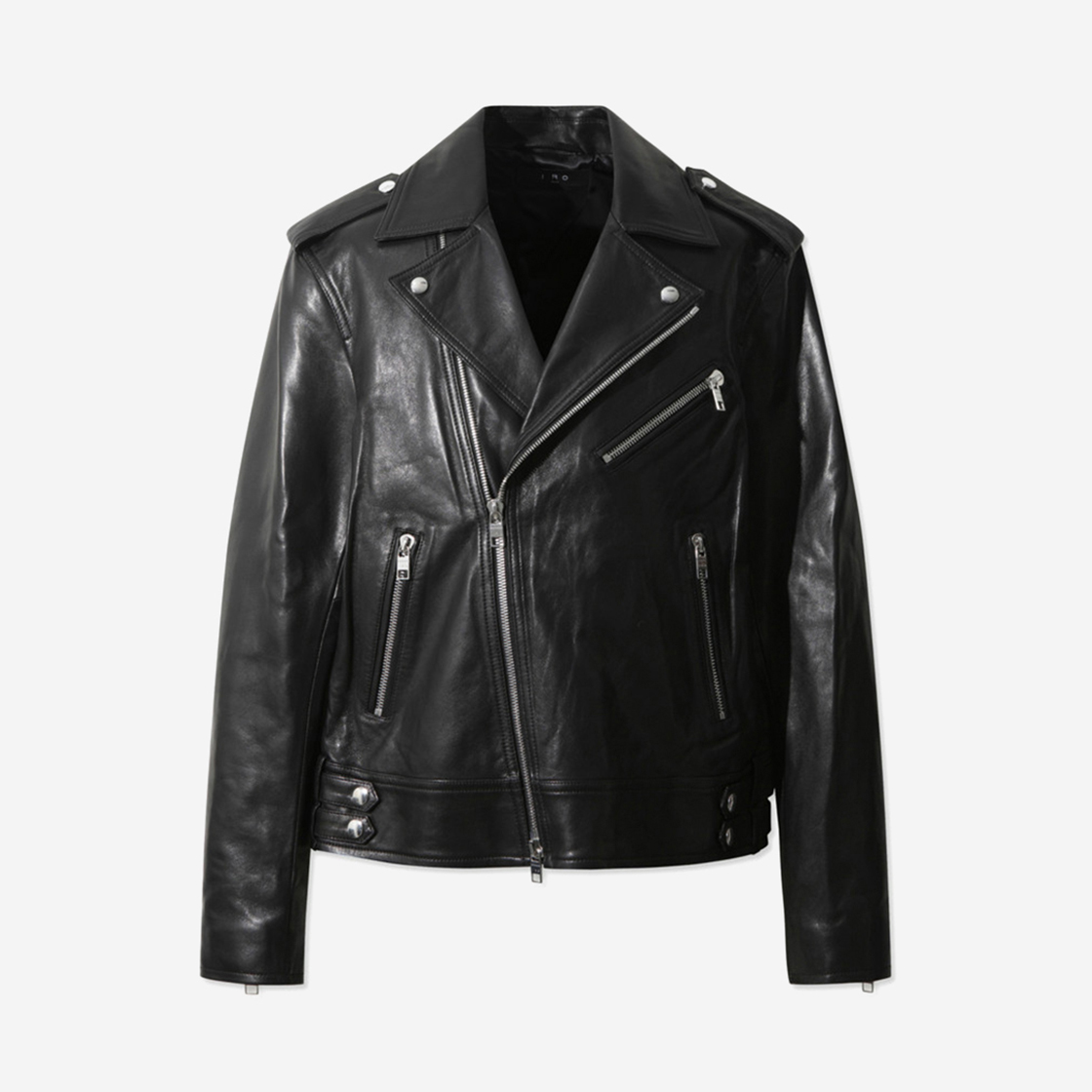 이로 덴젤 램스킨 레더 집업 후디 점퍼 블랙