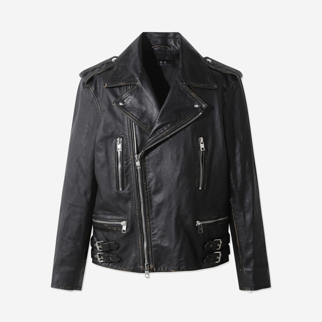 이로 데멧스페 데미지 버튼 가죽자켓 블랙