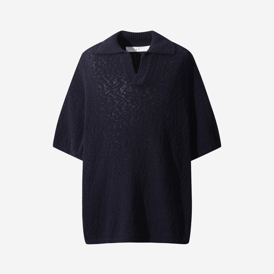 이로 트로피칼 코튼 혼방 카라 니트 네이비