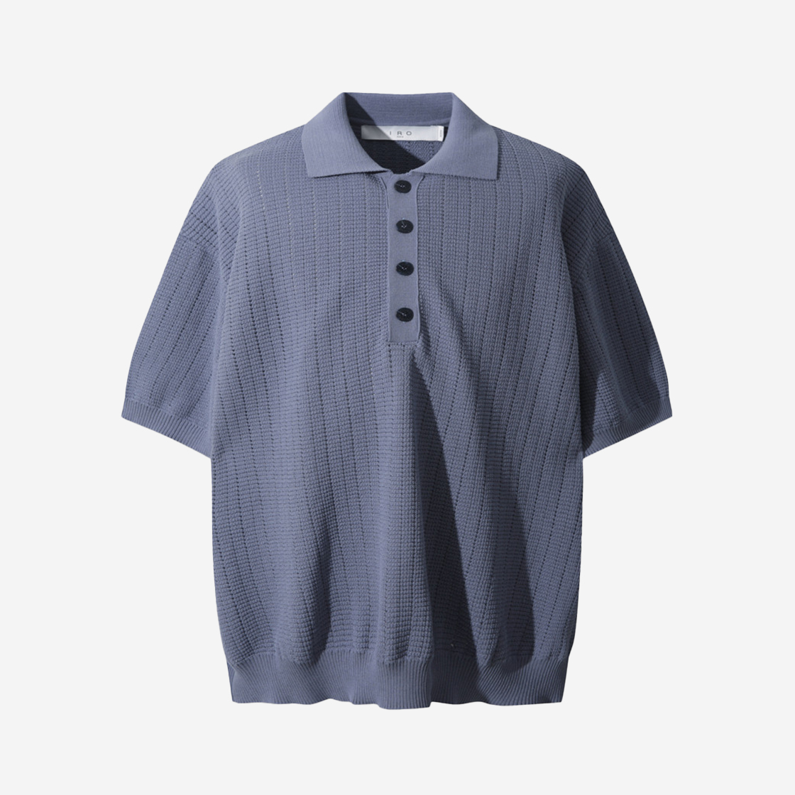이로 코튼 오버사이즈 폴로 스웨터 블루