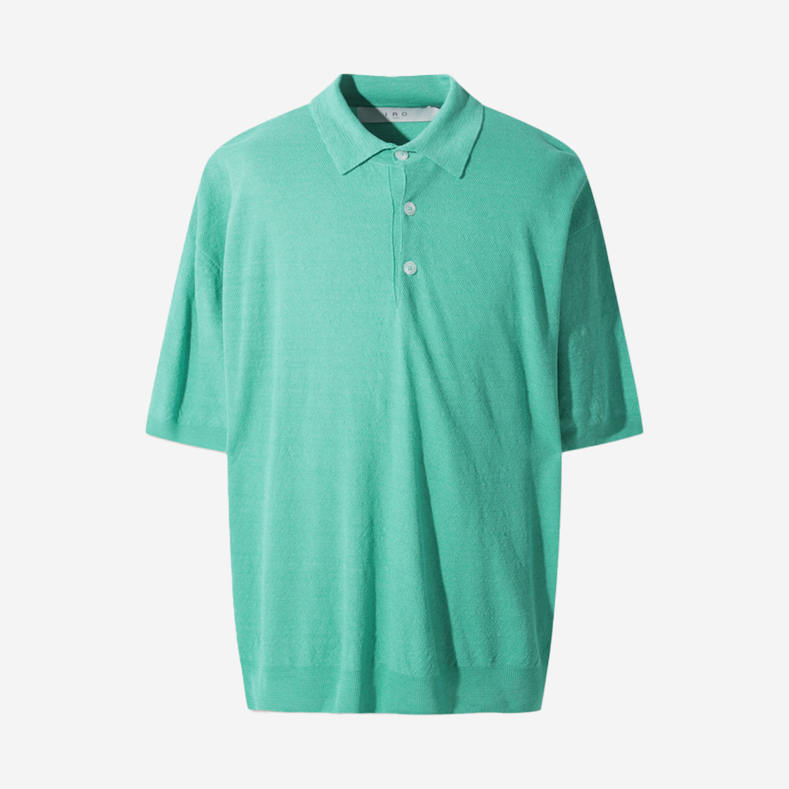 이로 트로피칼 코튼 혼방 카라 니트 그린
