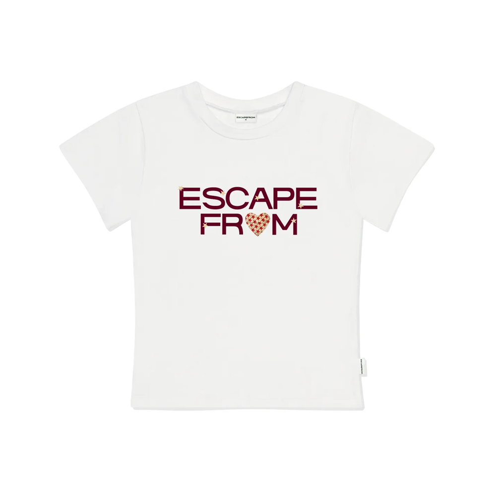 이스케이프프롬 프롬 하트 프린트 슬림핏 반팔티 아이보리