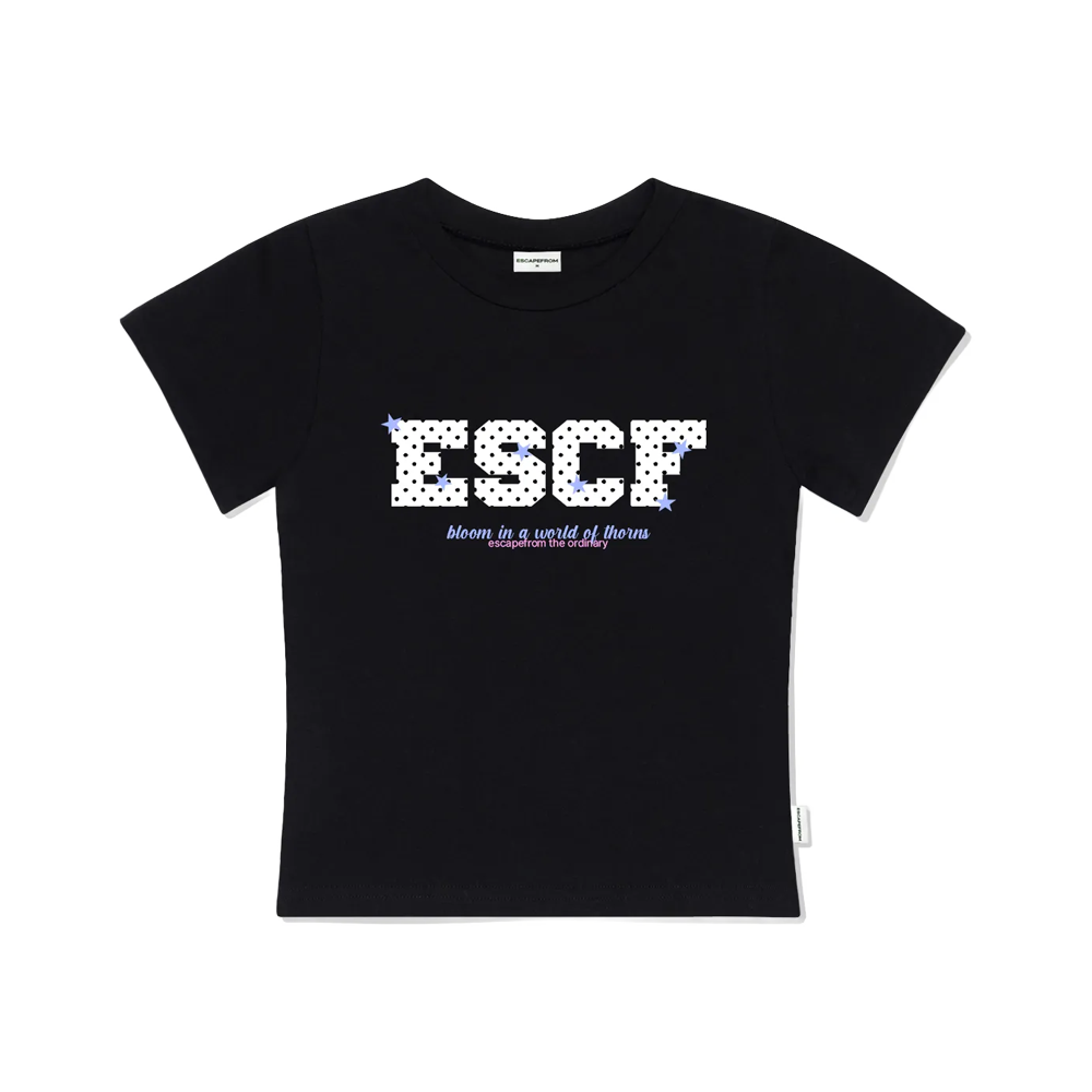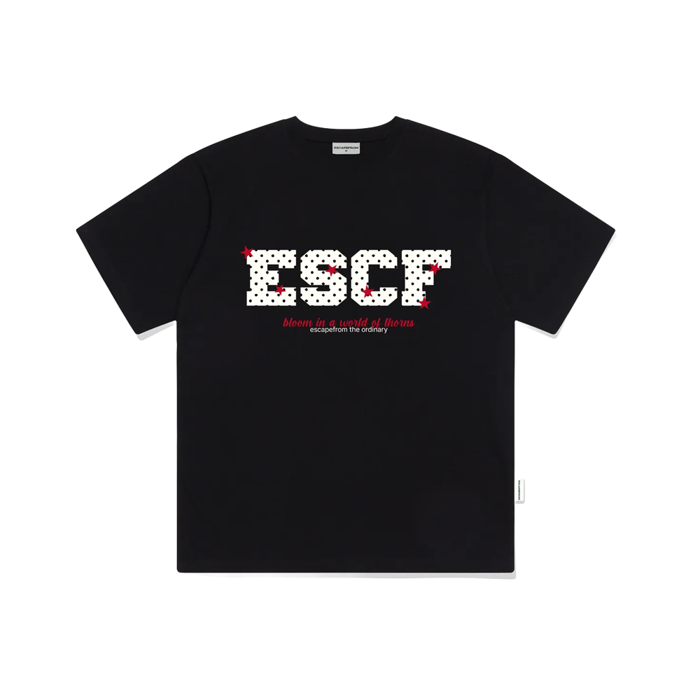 이스케이프프롬 도트 스타 블룸 프린트 슬림핏 반팔티 블랙
