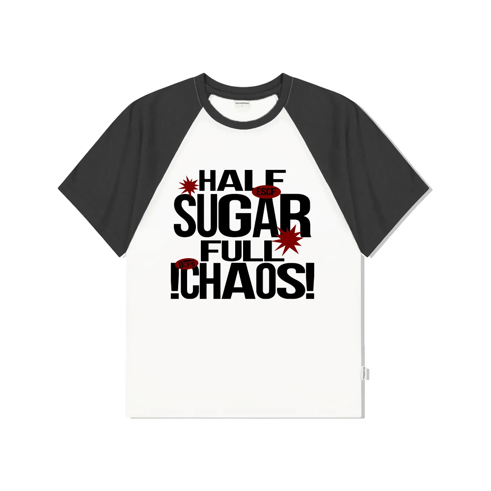 이스케이프프롬 하프 슈거 풀 카오스 프린트 래글런 배색 반팔티 차콜