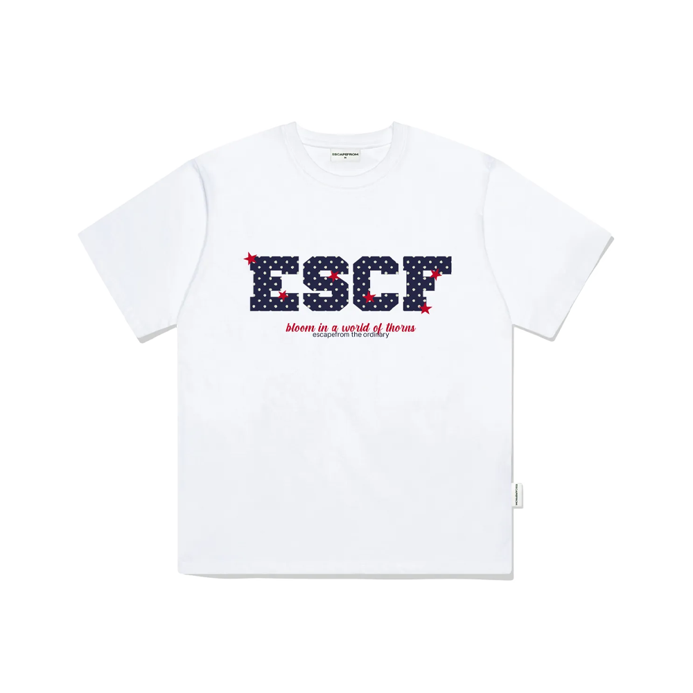 이스케이프프롬 도트 스타 블룸 프린트 오버핏 반팔티 화이트