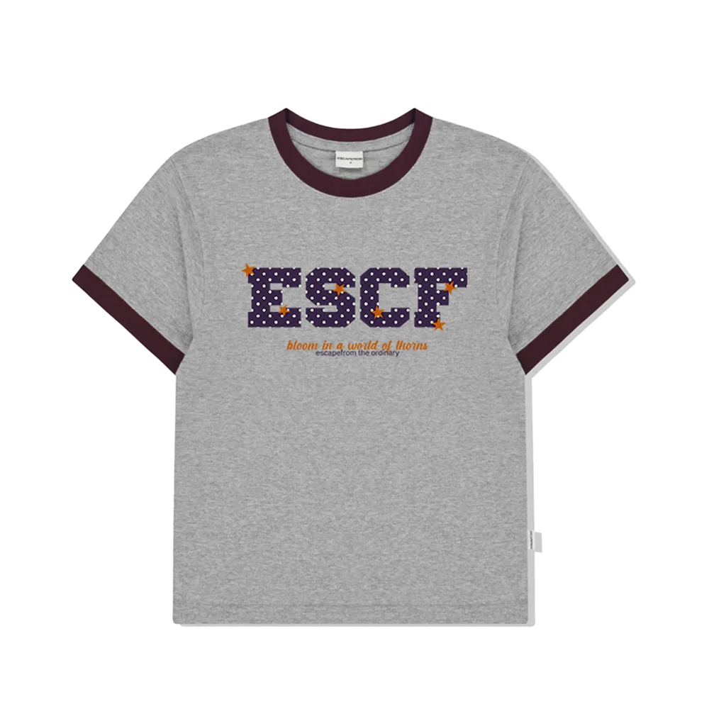 이스케이프프롬 풀 러브 ESCF 앤드 차콜 스타 로고 스트라이프 풀프린트 링거 반팔티