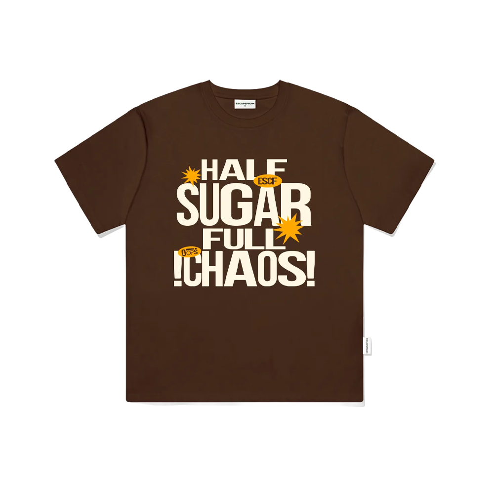 이스케이프프롬 하프 슈거 풀 카오스 프린트 오버핏 반팔티 브라운