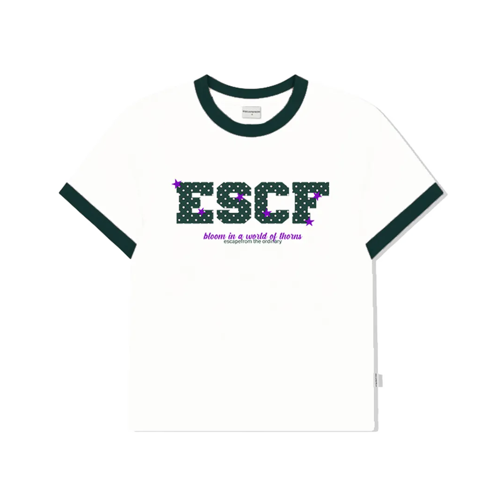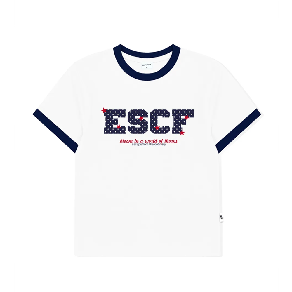 이스케이프프롬 풀 러브 ESCF 앤드 소라 스타 로고 스트라이프 풀프린트 링거 반팔티