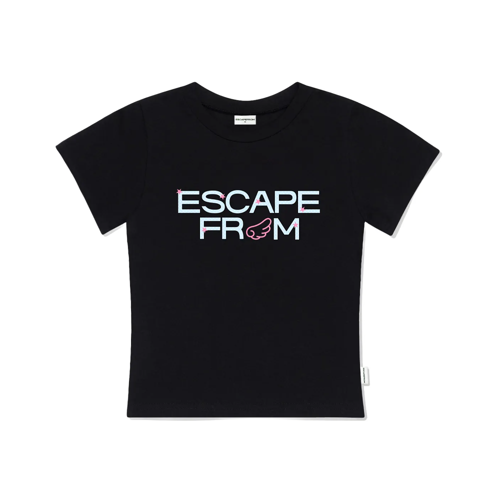 이스케이프프롬 프롬 엔젤 프린트 슬림핏 반팔티 블랙