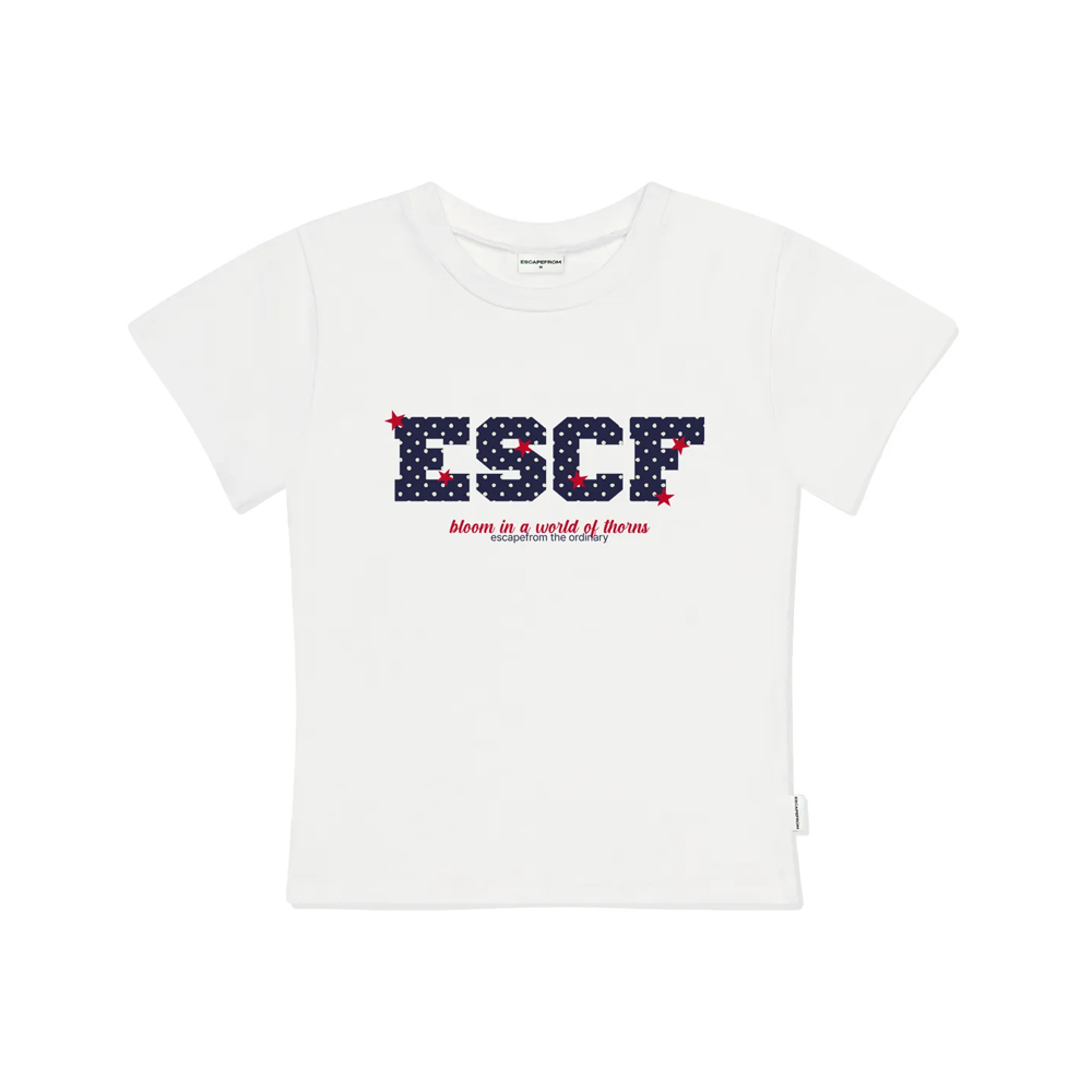 이스케이프프롬 도트 스타 블룸 프린트 슬림핏 반팔티 아이보리