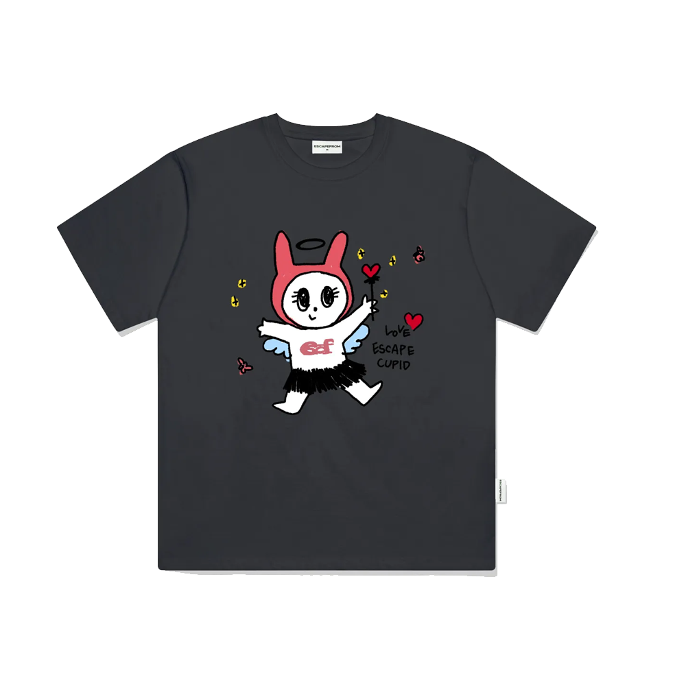 이스케이프프롬 러브 큐피드 프린트 오버핏 반팔티 차콜