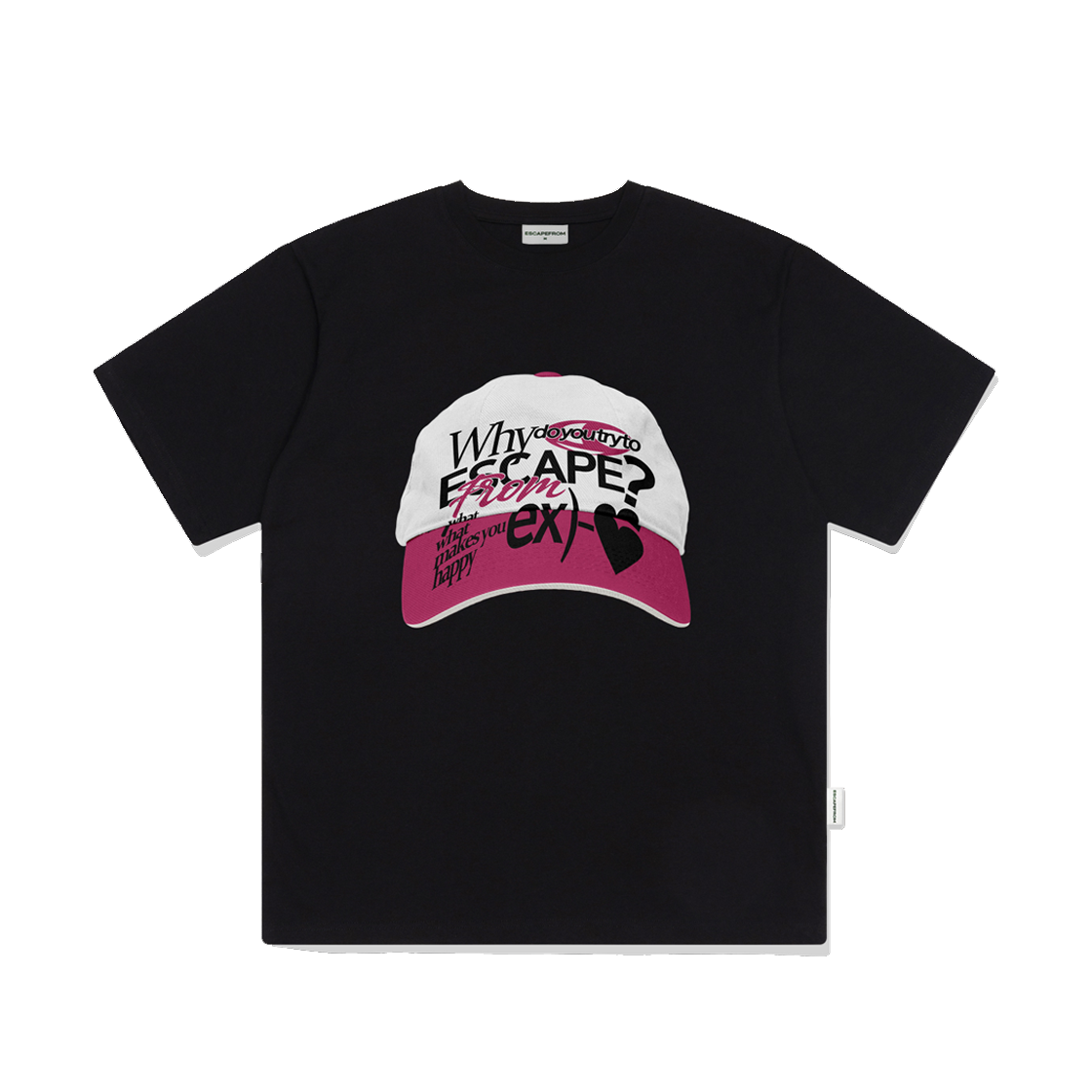 이스케이프프롬 볼캡 ex 핑크하트 프린트 오버핏 반팔티 블랙