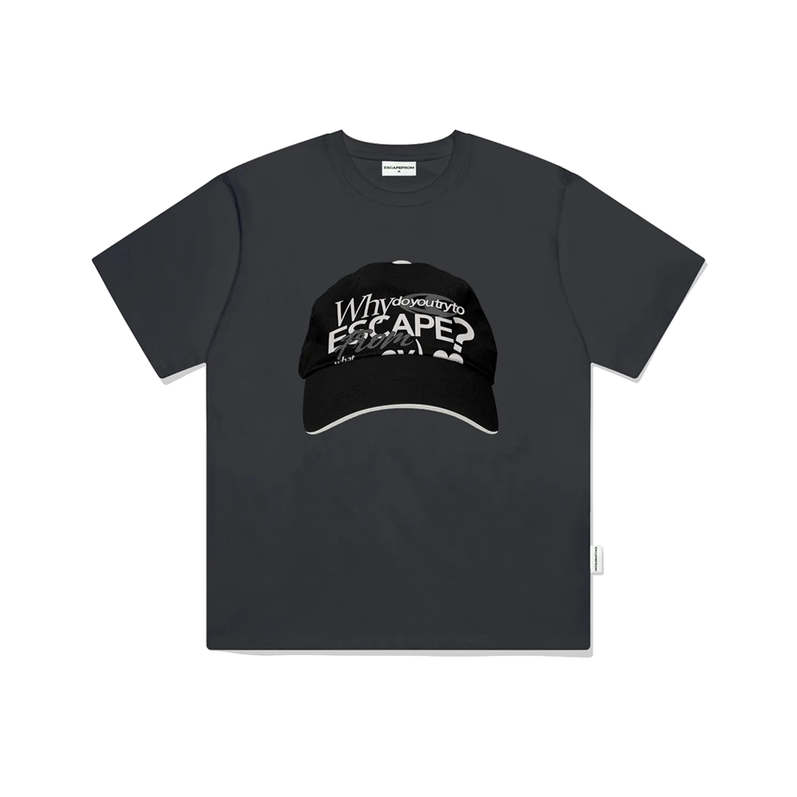 이스케이프프롬 볼캡 ex 화이트하트 프린트 오버핏 반팔티 차콜