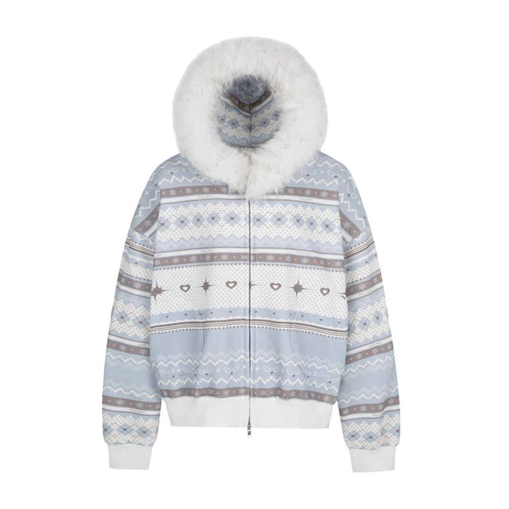 이스케이프프롬 노르딕 퍼 투웨이 후드집업 블루