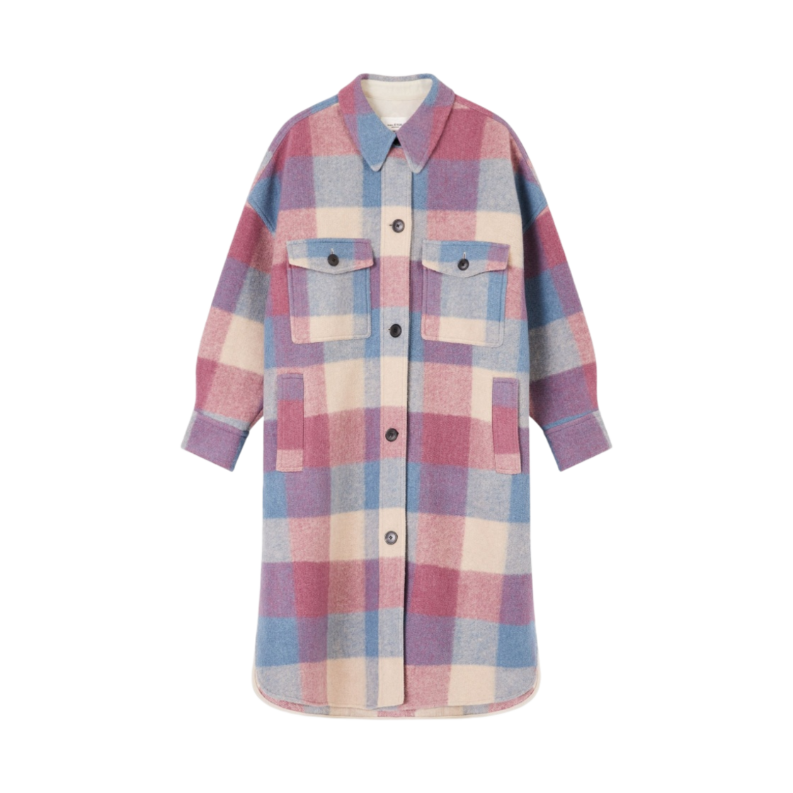 (W) 이자벨 마랑 폰티지 롱 체커드 울 블렌드 코트 핑크 플럼 - 24FW