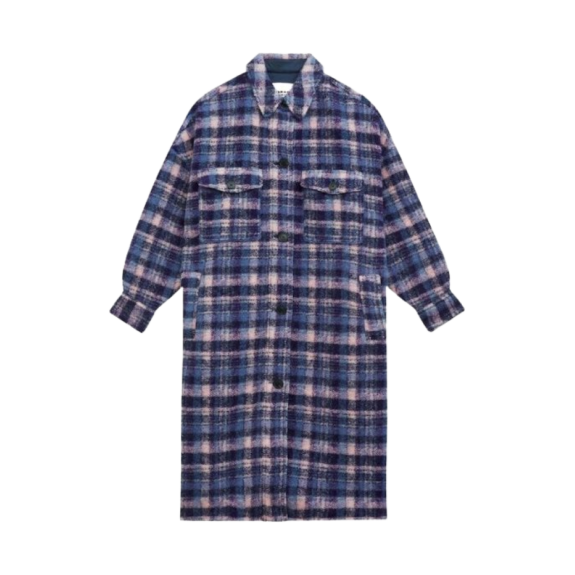 (W) 이자벨 마랑 폰티지 롱 체크 울 블렌드 코트 라일락 네이비 - 24FW