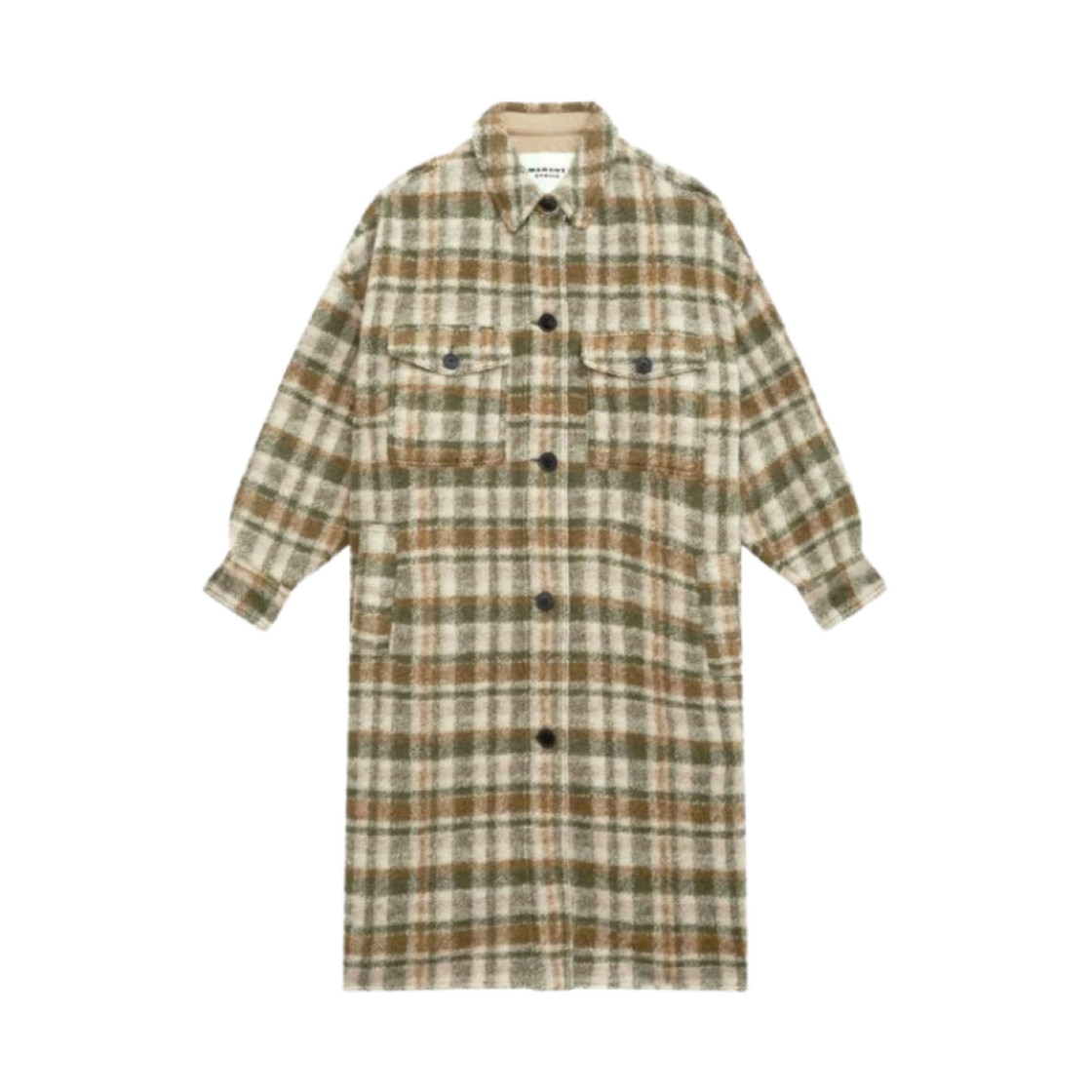 (W) 이자벨 마랑 폰티지 롱 체크 울 블렌드 코트 카키 에크루 - 24FW