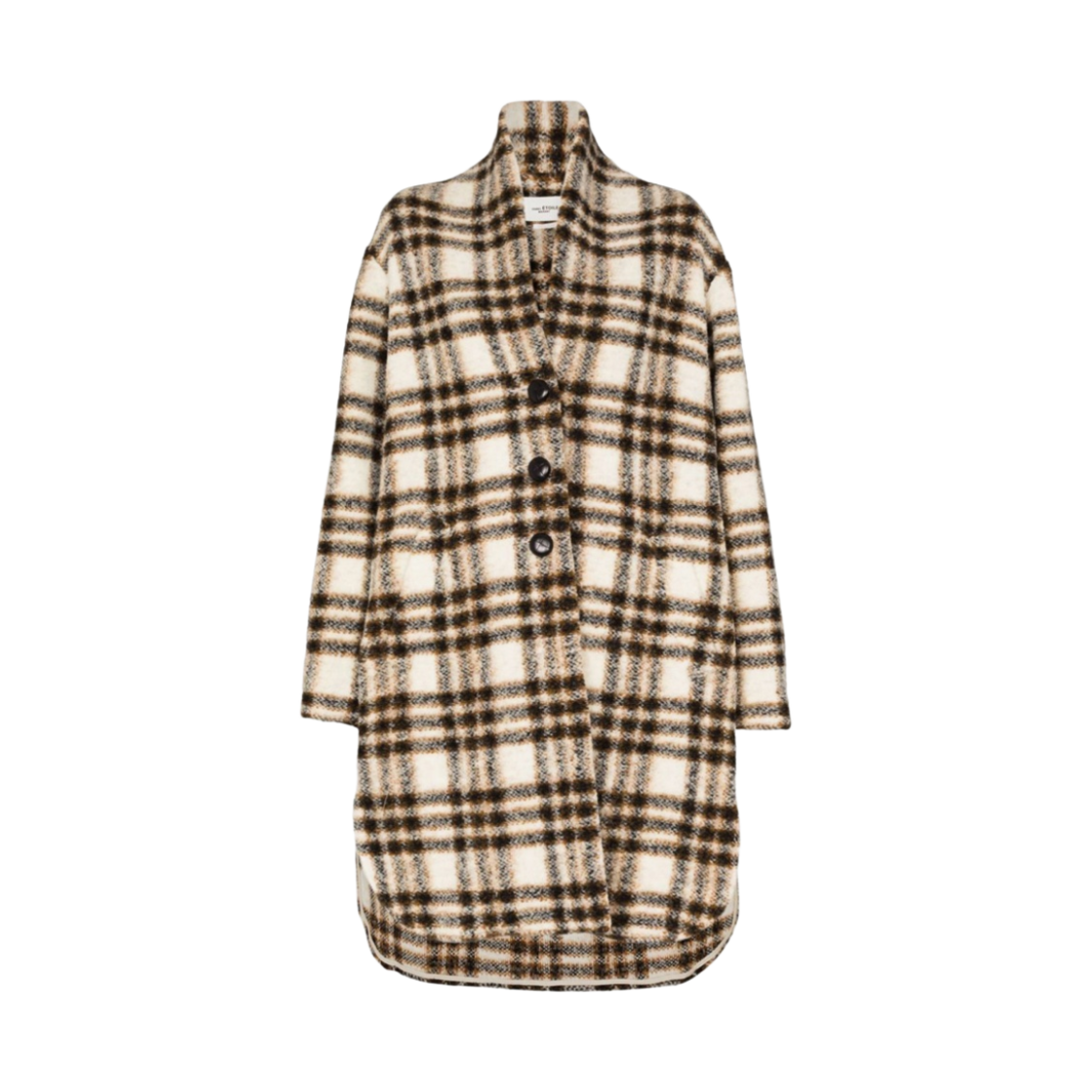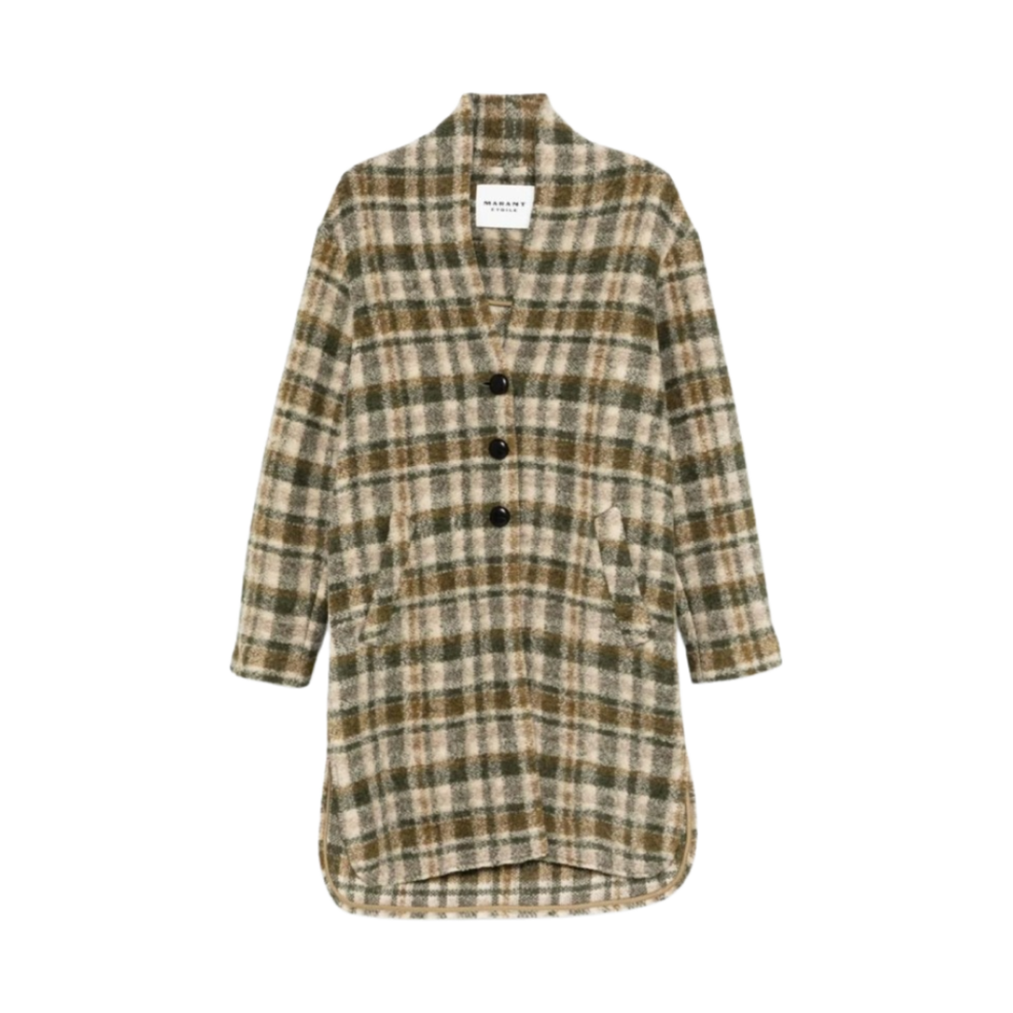 (W) 이자벨 마랑 폰티지 롱 체크 울 블렌드 코트 카키 에크루 - 24FW