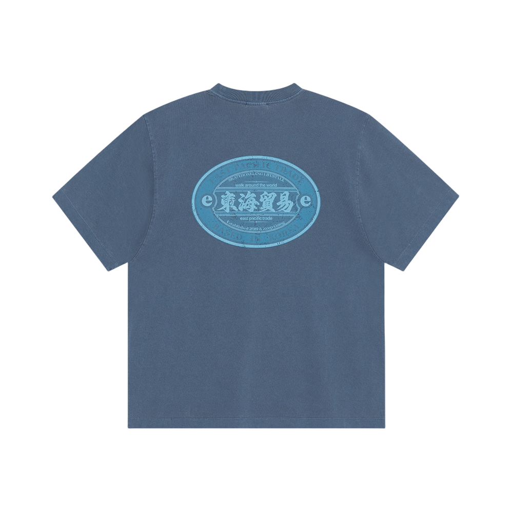 이피티 클래식 로고 피그먼트 다이 티셔츠 네이비
