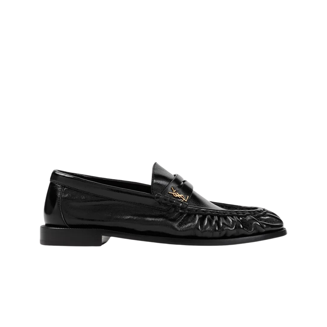 생로랑 르 로퍼 페니 슬리퍼 샤이니 크리즈드 레더 블랙
